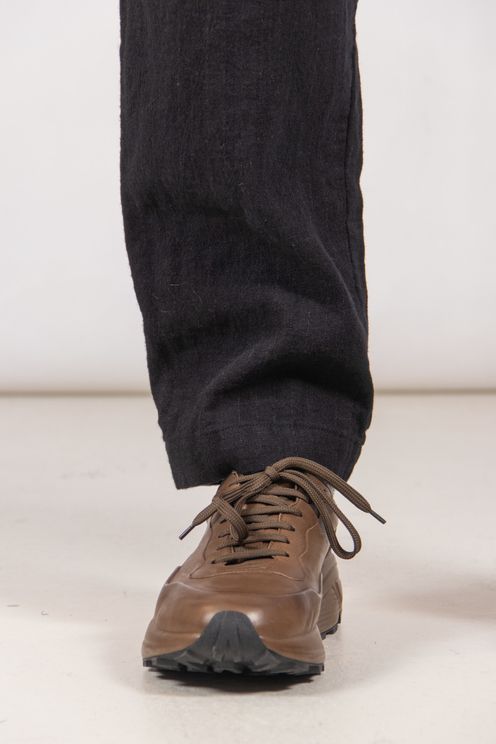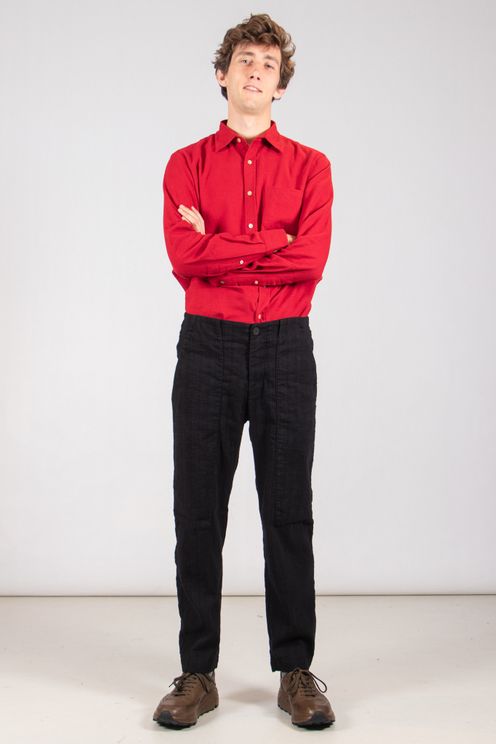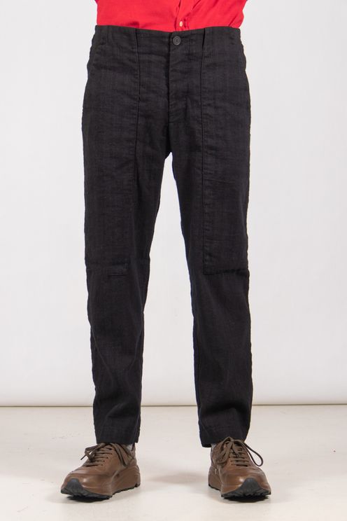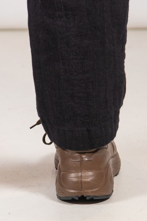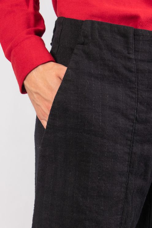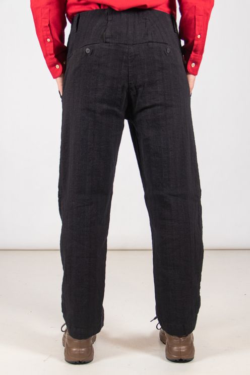 Linen, cotton and wool blend trousers with baggy fit and subtle striped fabric.